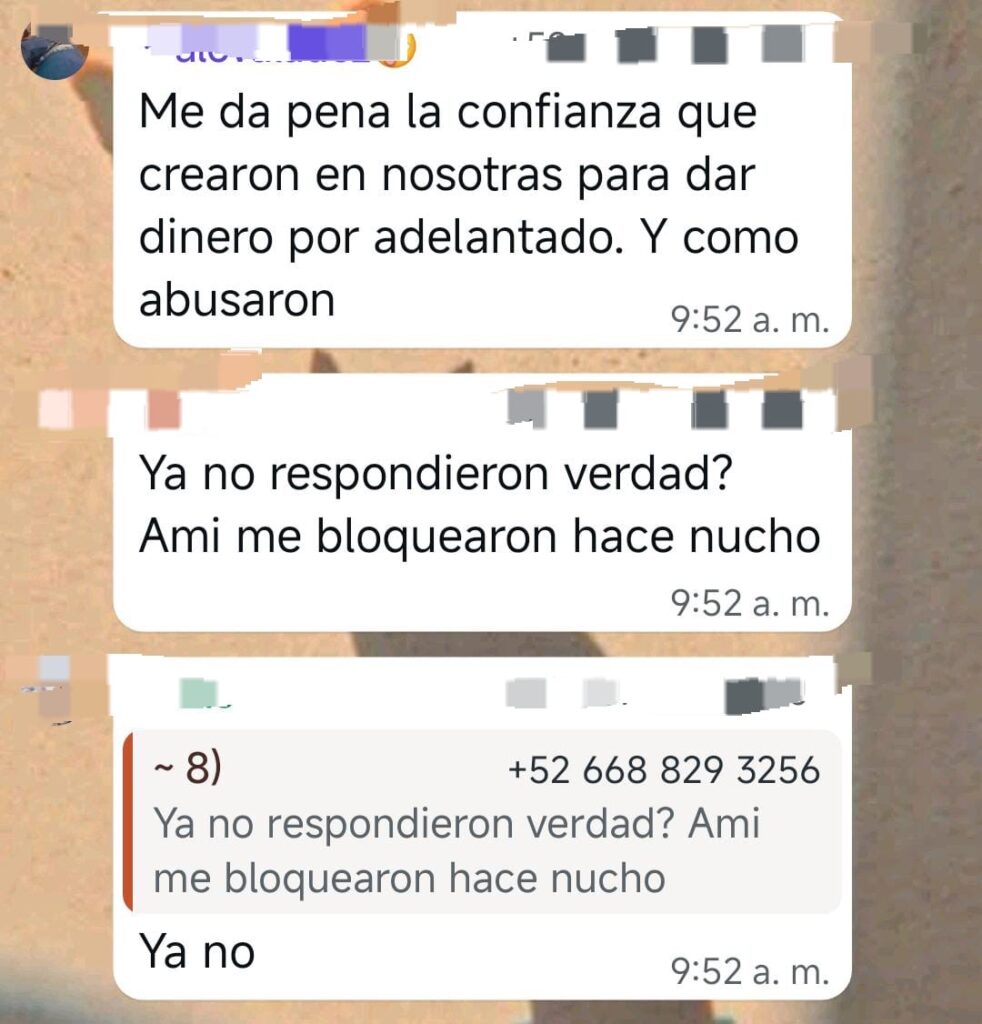 Las denunciantes relataron que, a diferencia de otras ocasiones en las que solo se solicitaba un anticipo, en esta ocasión se les pidió el pago total de los pedidos. Sin embargo, la mercancía nunca llegó y, actualmente, nadie les responde llamadas ni mensajes, quedando el dinero sin recuperar.