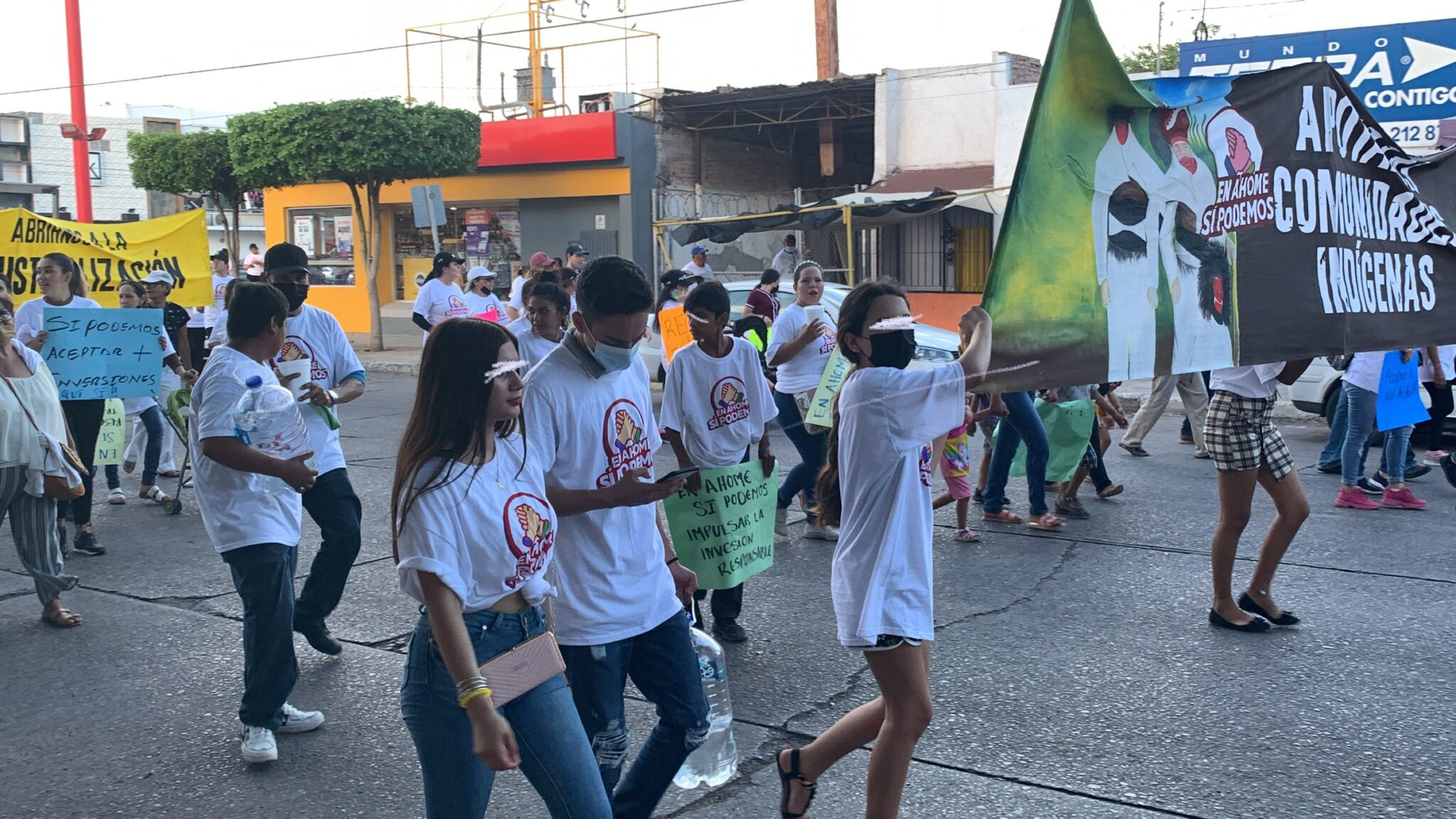 Los Mochis, Sinaloa.- Un contingente de cientos de personas provenientes de comunidades de Ahome participaron en la marcha a favor de la instalación de la planta de amoniaco en calles de la ciudad.