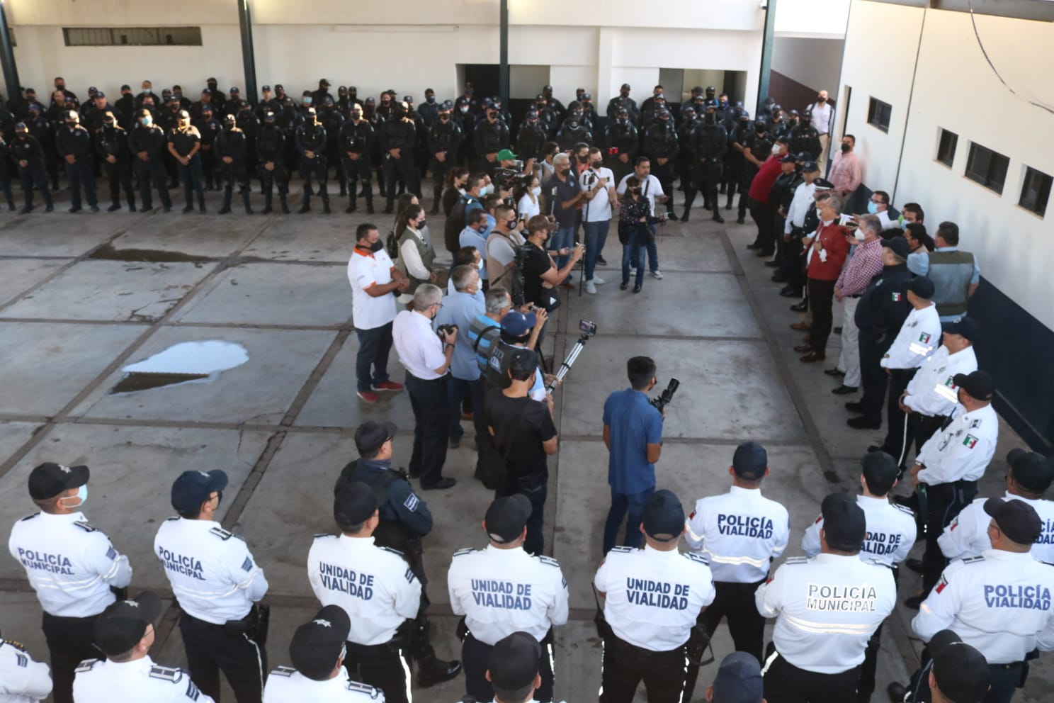 Informó que próximamente se hará entrega de 126 unidades nuevas a la Dirección de Seguridad Pública y Tránsito Municipal, entre ellas camionetas, motos, vehículos tipo sedán.