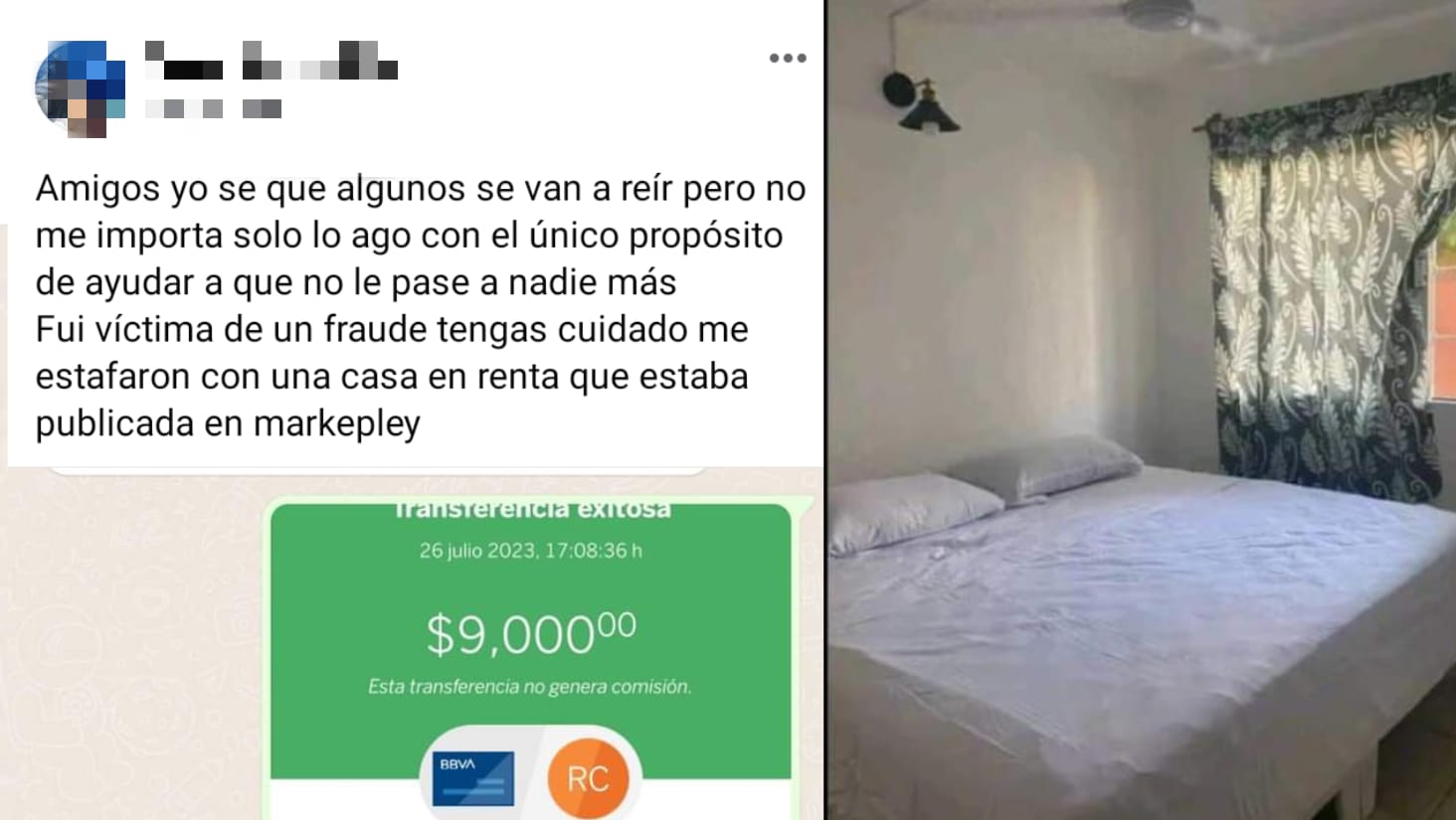Una denuncia que nos hicieron llegar fue de un caso, en donde en Guanajuato en un grupo de Facebook alertaron a la comunidad sobre una persona que estaba estafando, pidiendo pagos por adelantado, y en los grupos de compra y venta de Facebook de Los Mochis la misma persona se encontraba estafando a la comunidad, a lo que lamentablemente una persona que resultó estafada alertó a las demás personas en no caer en este tipo de engaños.