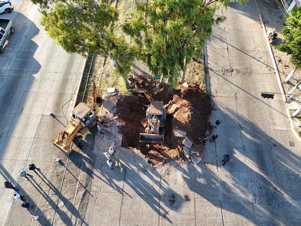 Dijo que desde el primer día en que se abrió el socavón se acudió a revisar la situación y se colocaron lonas y carteles informativos a la ciudadanía para que tome sus prevenciones, ya que dicha área en el camellón central se utiliza como parque lineal para caminar, para esparcimiento y para hacer ejercicio, lo que es de alto riesgo, por las condiciones de la superficie.