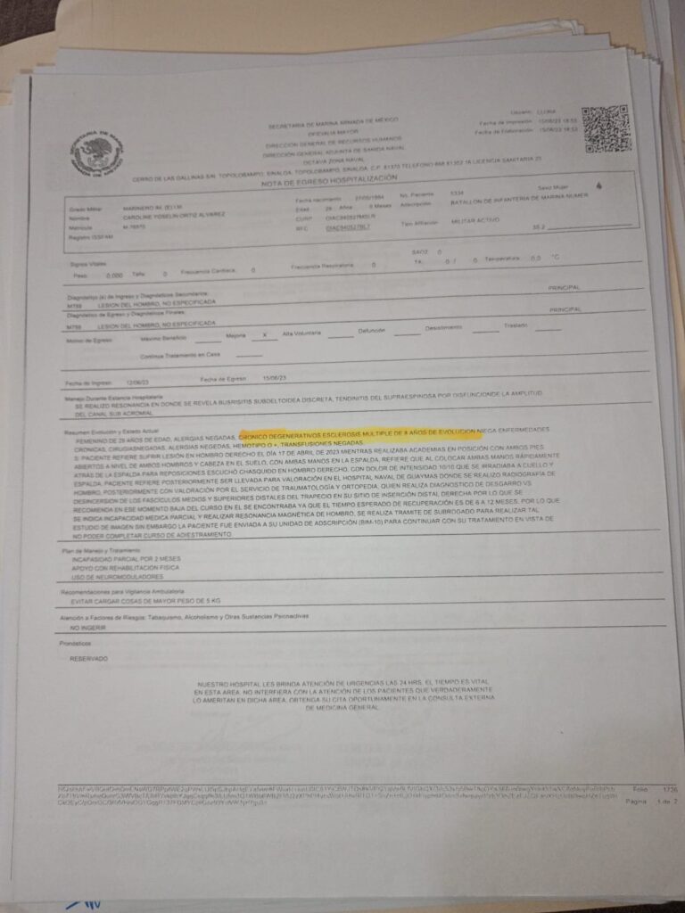 Sobre el desarrollo de los hechos, detallaron que, aunque Caroline estaba adscrita a Topolobampo, fue enviada a Guaymas para el curso de adiestramiento, donde ocurrió la lesión. Posteriormente, fue trasladada administrativamente a Tabasco, donde finalmente se concretó su baja por término de contrato.