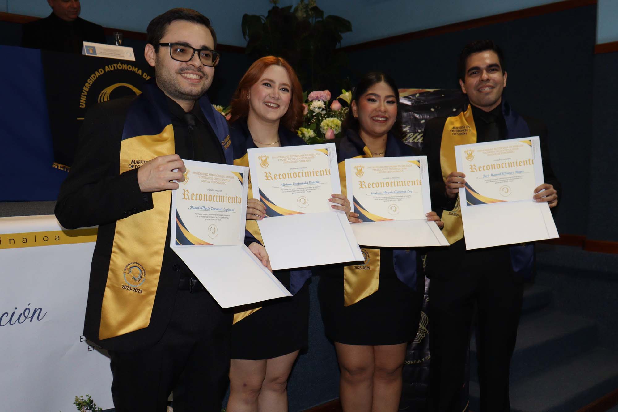 La Facultad de Odontología de la Universidad Autónoma de Sinaloa (UAS) llevó a cabo la ceremonia de graduación de la Especialidad en Endodoncia y de la Maestría en Ortodoncia y Ortopedia Maxilar, de las cuales en total egresaron 18 jóvenes, mismos que hoy cuentan con habilidades avanzadas para manejar casos complejos, ofrecer tratamientos de alta calidad y mejorar significativamente la salud y autoestima de los pacientes.