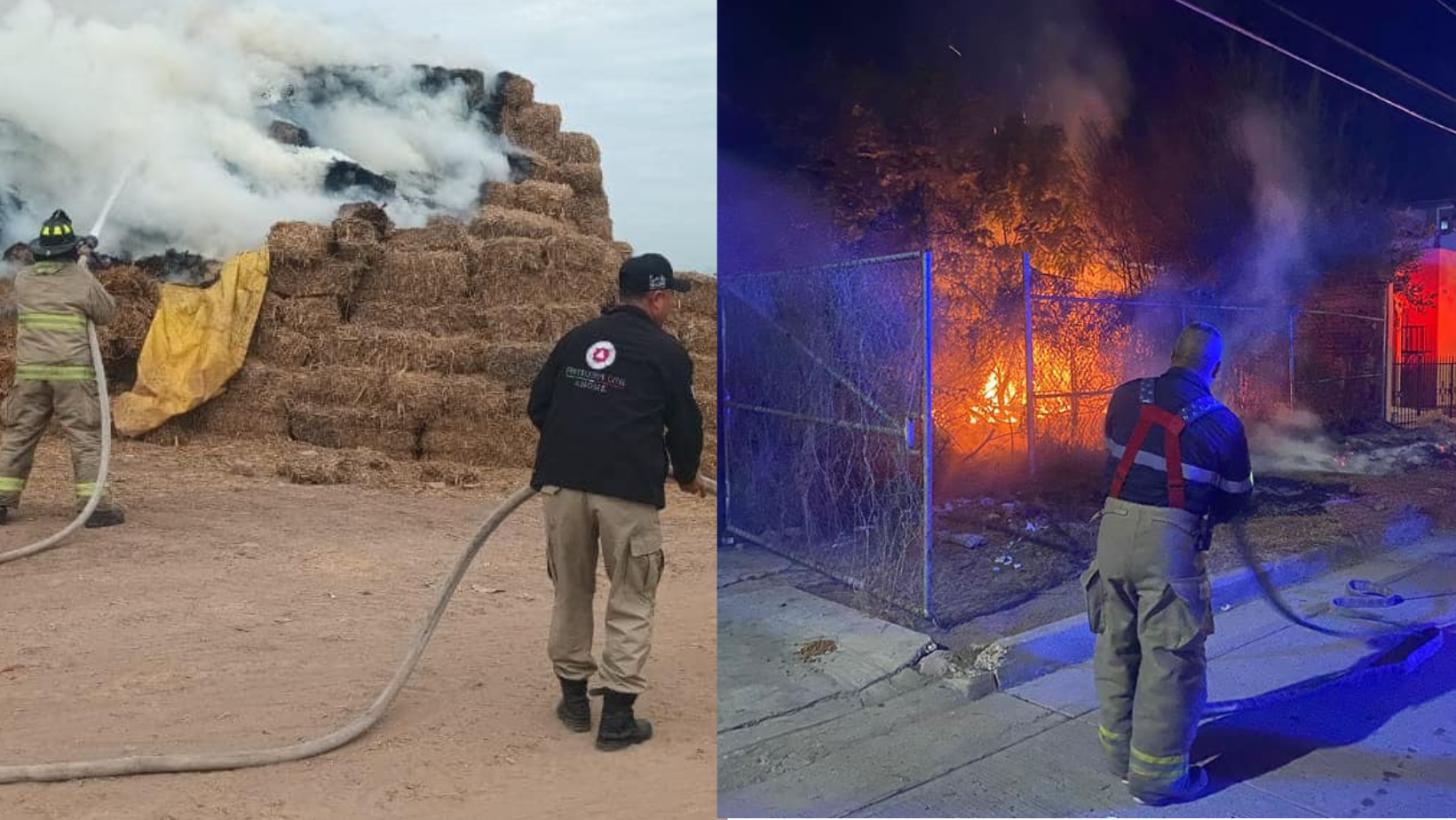 Y finalmente, un incendio en pacas de cacahuate ocurrido en un depósito ubicado en dren Juárez y carretera México 15, obligó a los bomberos y a Protección Civil a emplearse con rapidez para evitar que las llamas consumieran la pastura para ganado.
