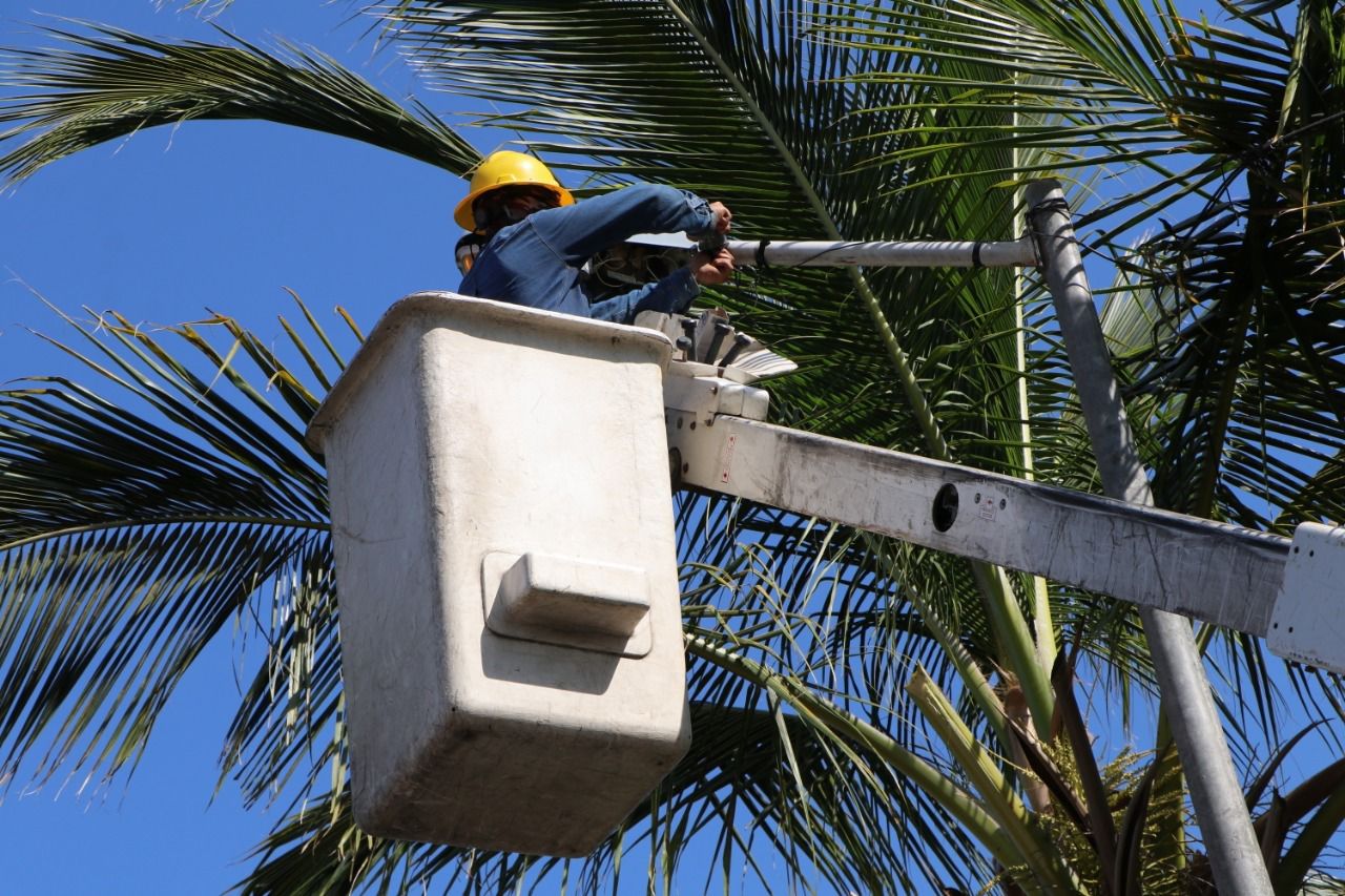 Mazatlán, Sinaloa.- El personal operativo del área de Alumbrado Público, de la Dirección de Servicios Públicos, llevó a cabo una intensa jornada de labores en varios sectores de la Isla de la Piedra, a fin de atender las necesidades de los habitantes de esta comunidad.