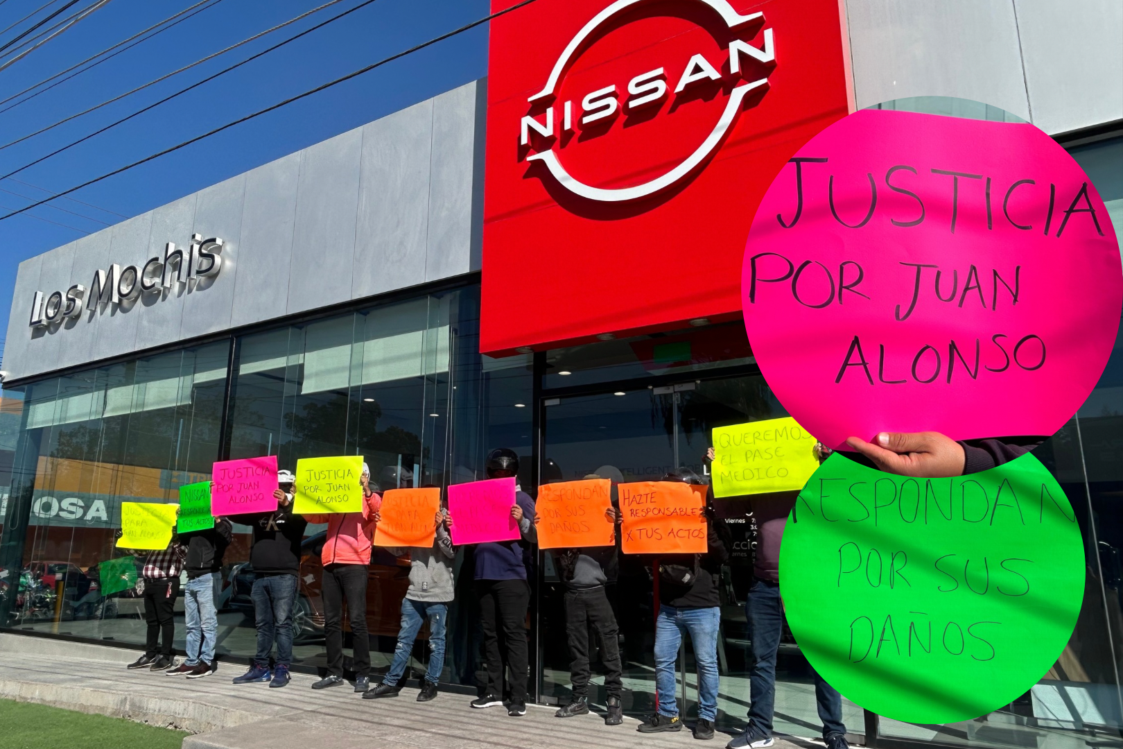 El incidente ocurrió el pasado jueves 9 de enero en la intersección de Niños Héroes y Morelos, donde una camioneta “demo” de Nissan impactó al motociclista Juan Alonso, causándole fracturas en la cadera y las piernas. Según los manifestantes, hasta el momento no se ha brindado atención médica adecuada debido a la falta de acuerdos entre las partes involucradas.