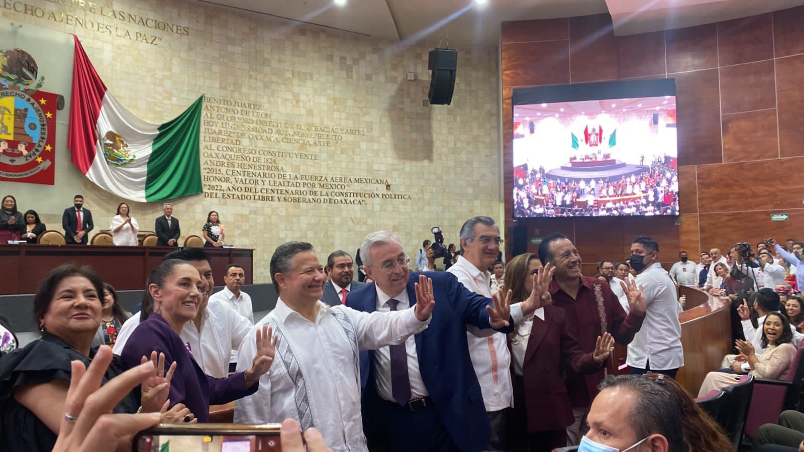 Oaxaca, Oaxaca, 01 de diciembre del 2022.- A invitación de la LXV Legislatura del Congreso del Estado de Oaxaca, el gobernador Rubén Rocha Moya asistió a la sesión solemne donde rindió protesta Salomón Jara Cruz, como gobernador del estado para el periodo 2022-2028.