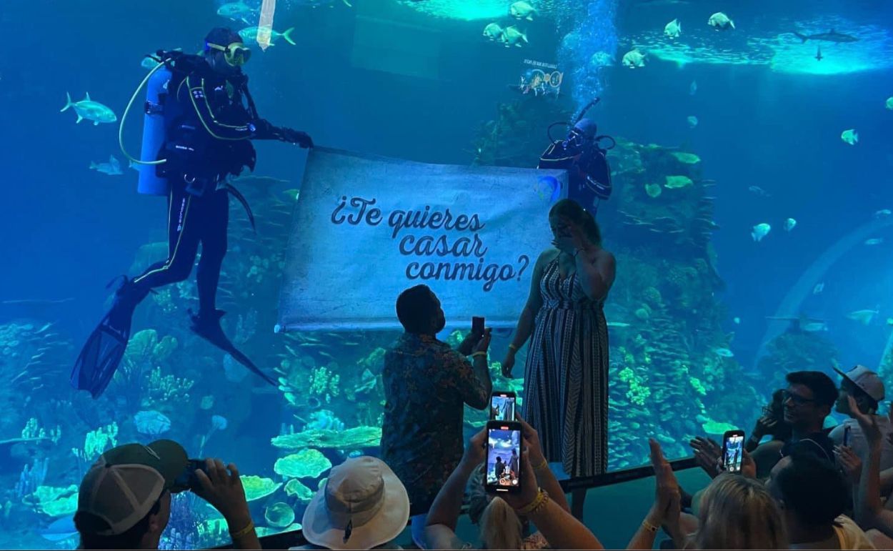 Entre los visitantes se encontraba Giovannie, quien tenía una idea extraordinaria en mente para sorprender a su amada pareja, Morgan. Con un plan bien pensado, eligió el ambiente mágico del acuario para llevar a cabo su emotiva propuesta de matrimonio.