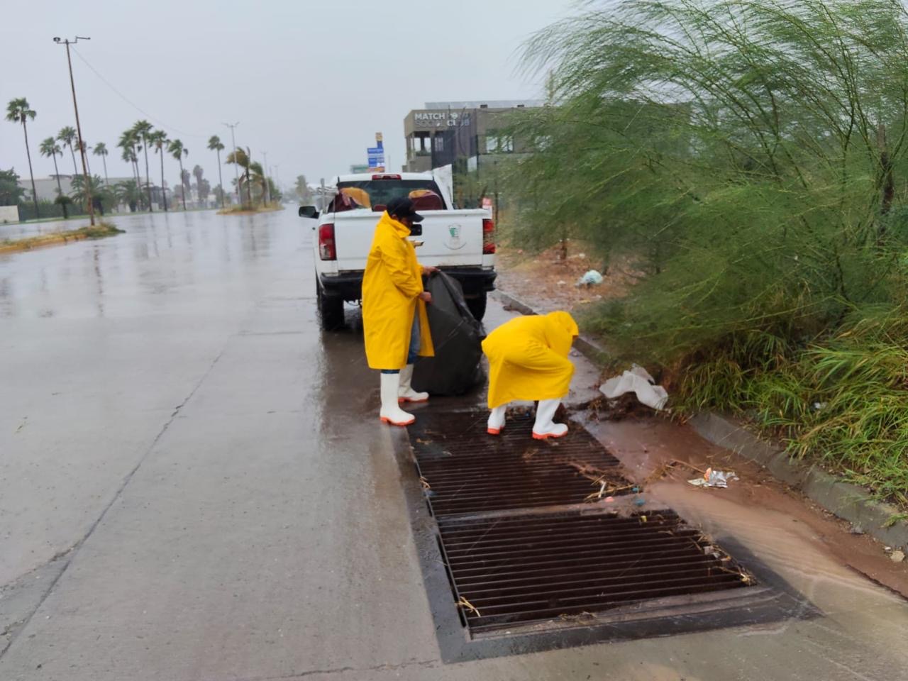 A su vez personal de Servicios Públicos de igual manera desde las primeras obras del día, realiza labores de limpieza en bocas de tormenta y alcantarillas.