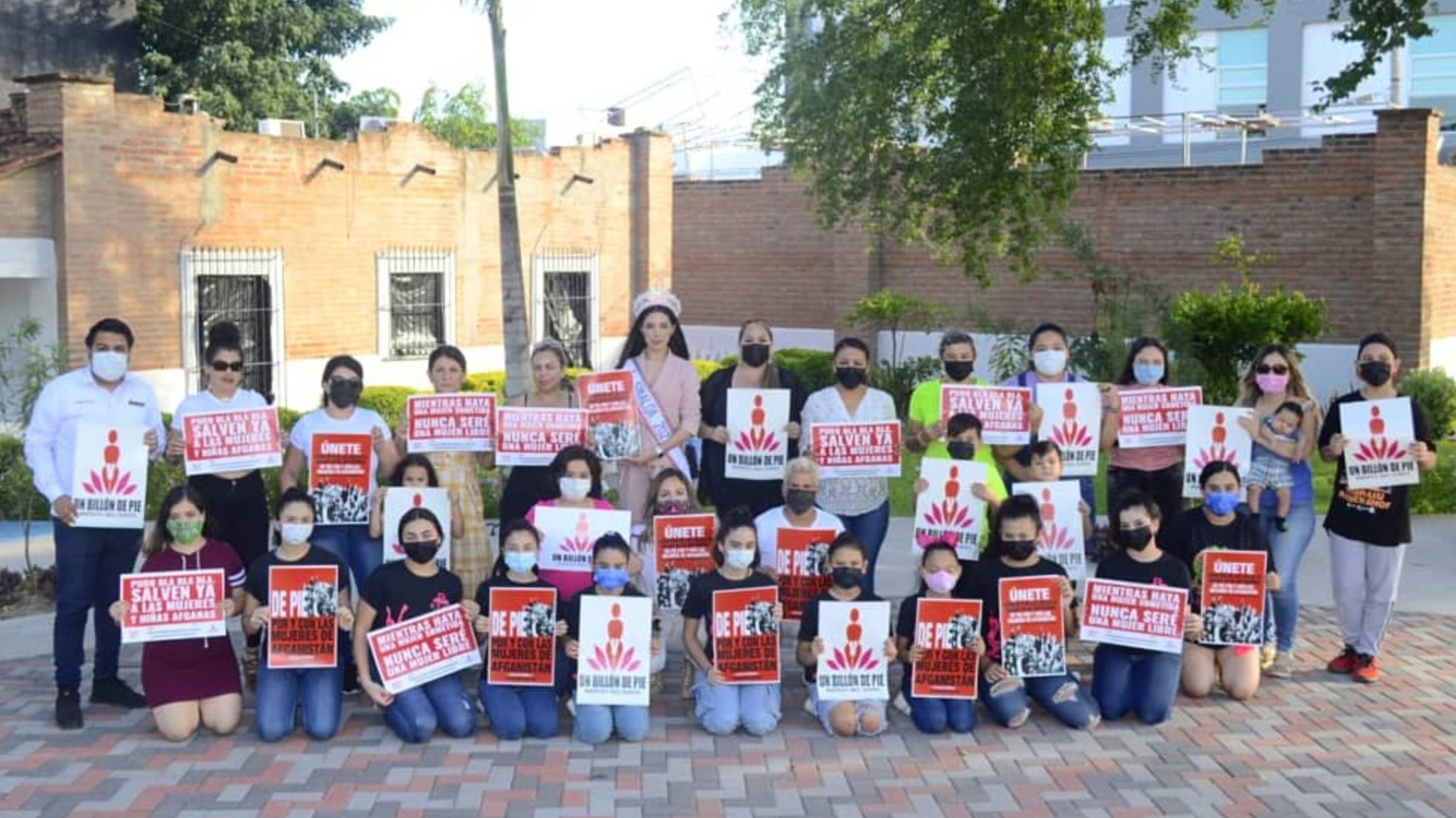 Los Mochis, Sinaloa. A 25 de septiembre de 2021.- Se realizó una manifestación pacífica este sábado en la Plaza la Mujer ubicada en el exterior de la Casa del Centenario, dónde decenas de mujeres y hombres se unieron en Los Mochis al igual que en otras partes del mundo para pedir la liberación de las mujeres afganas.