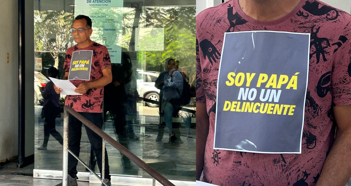 Portando una pancarta en zona frontal y en la espalda de su playera con la frase » SOY PAPÁ, NO DELICUENTE», Ariel comentó que los maltratos empezaron alrededor de hace ocho meses: