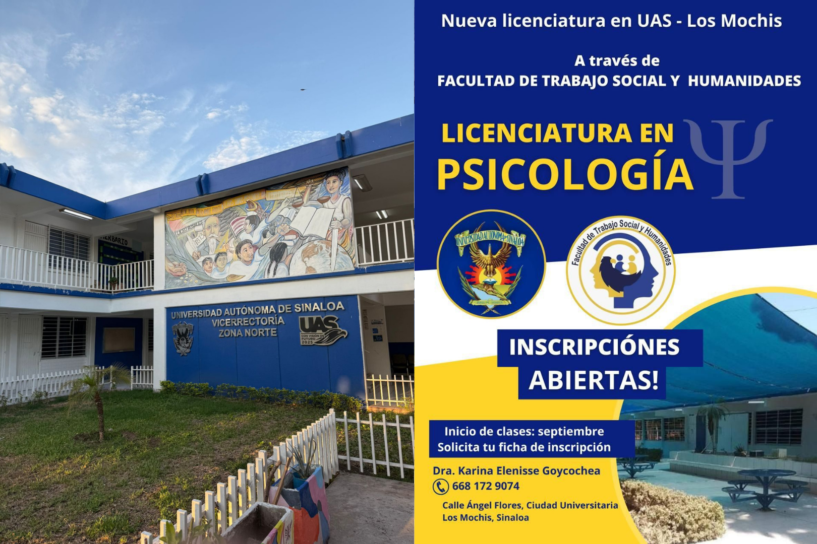 Los Mochis, Sinaloa. Una nueva oportunidad académica llega a la ciudad con la apertura de la Licenciatura en Psicología a través de la Facultad de Trabajo Social y Humanidades de la Universidad Autónoma de Sinaloa (UAS), unidad regional Los Mochis.