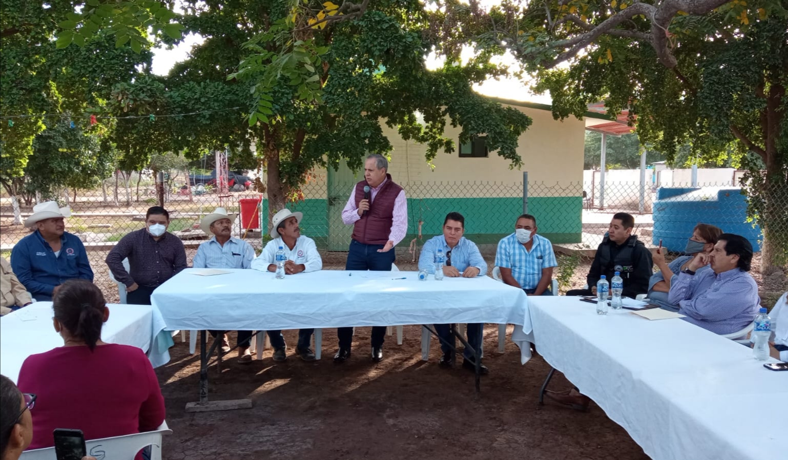 Tabelojeca, Ahome, Sinaloa, México. 8 de Noviembre del 2021.- Acompañado de varios de sus funcionarios, la mañana de este lunes el Presidente Municipal de Ahome, Gerardo Octavio Vargas Landeros, sostuvo un encuentro con comisarios ejidales en la comunidad de Tabelojeca, donde le plantearon la problemática del agua potable.