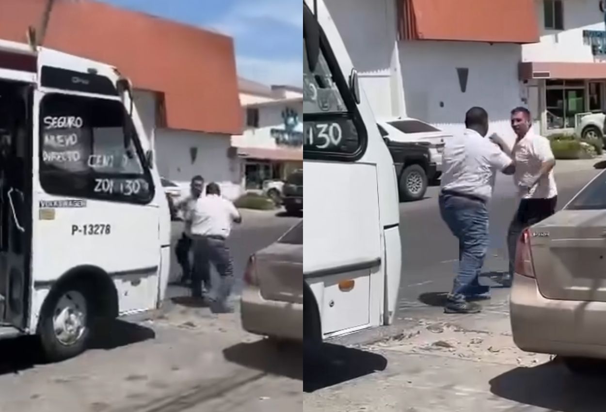 En un video que fue grabado por otra persona que pasaba por el lugar, y donde al mismo tiempo fueron interceptados por una mujer que baja de la unidad para tratar de separarlos.