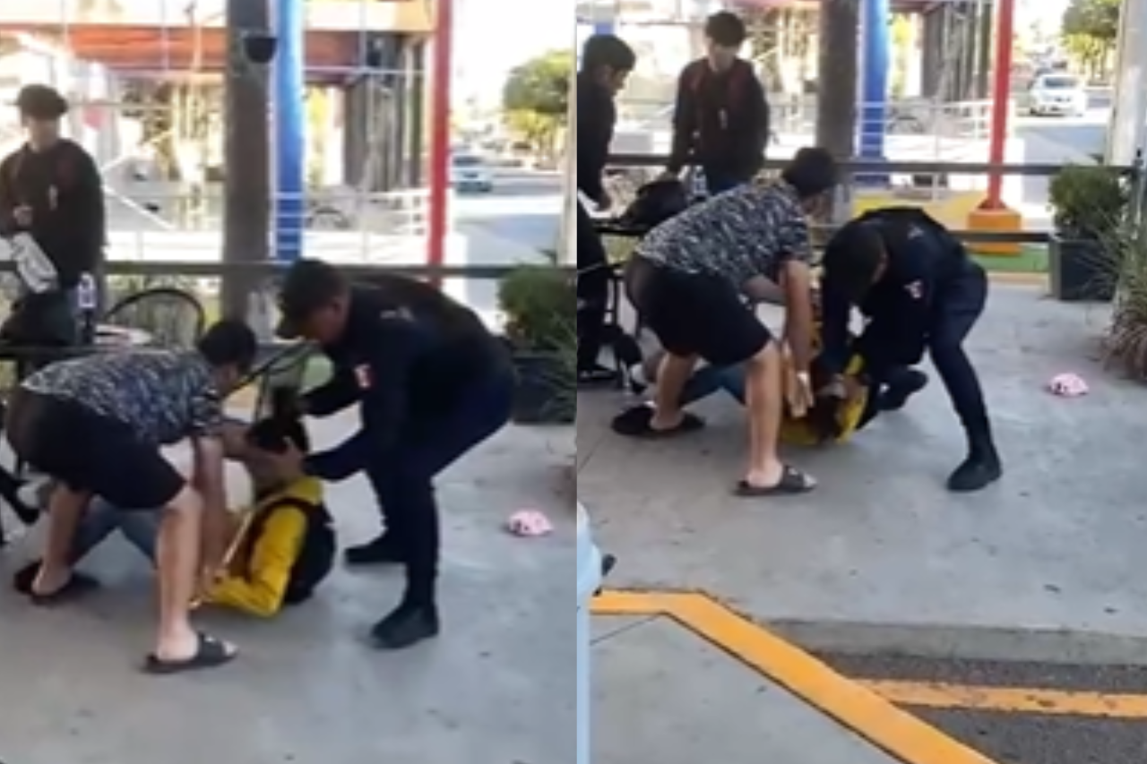 En el video se puede ver a un policía municipal agrediendo y forcejeando con uno de los jóvenes llegando hasta jalarle el cabello y reprimiéndolo contra el suelo hasta que uno de sus compañeros intenta detener al oficial, mismo que les responde: «hágase para allá, hágase para alla», posteriormente pide refuerzos a la policía municipal.