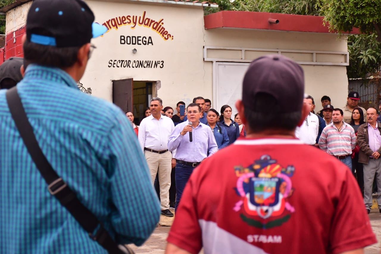Mazatlán, Sinaloa.- Mejores condiciones laborales, trabajo coordinado, más herramienta, maquinaria y seguimiento a las necesidades del área, ofreció el alcalde, Edgar González Zatarain, a los más de cuatrocientos empleados de parques y jardines, de la Dirección de Servicios Públicos Municipales.