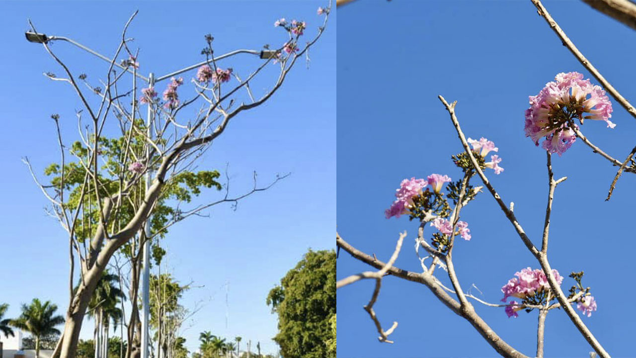 ¡Ya viene la primavera! Arboles de amapa comienzan a florecer en Los Mochis